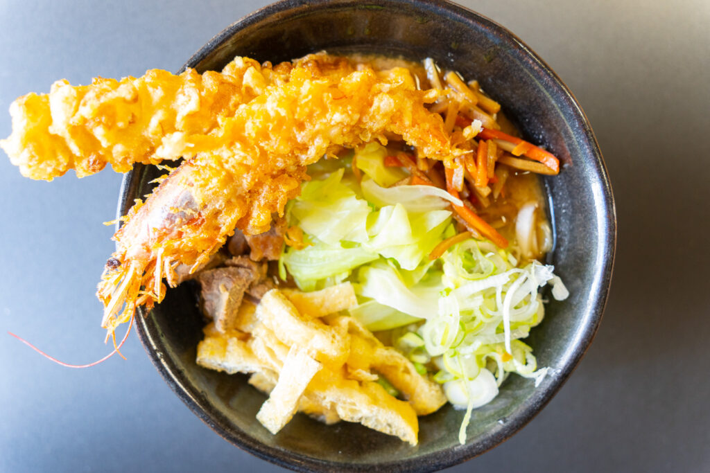 日本でここにしかないマシマシ二郎系うどんは麺も野菜も大盛り、天ぷらや肉のトッピングも選べるボリューム満点のうどんです。