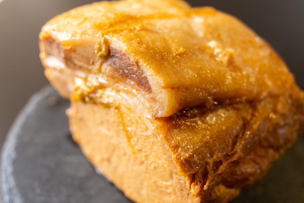 最後に、二郎系吉田のうどんに欠かせないトッピングは豚肉です。秘伝のスープに漬け込んだ豚肉は噛めば噛むほど旨味がにじみ出てきます。