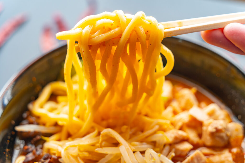 うどんに使用する秘伝のスープは、鶏ガラ、豚骨などじっくり24時間以上沸騰させ出汁を取り、ベースの味噌と醤油に様々な調味料を加えてたれを作っています。思わず最後の一滴まで飲み干してしまうほど旨いスープをご堪能下さい。