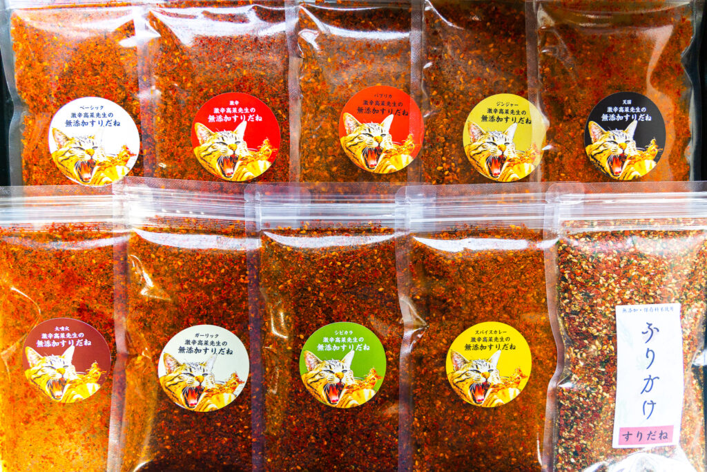 はじめまして。激辛高菜先生は山梨県富士吉田・河口湖にあるすりだね・激辛調味料の専門店です。